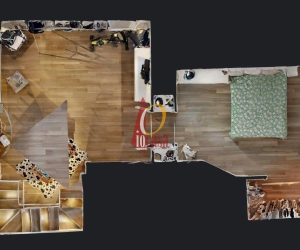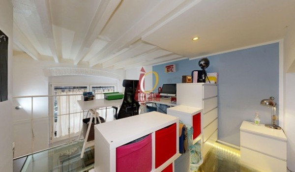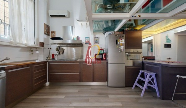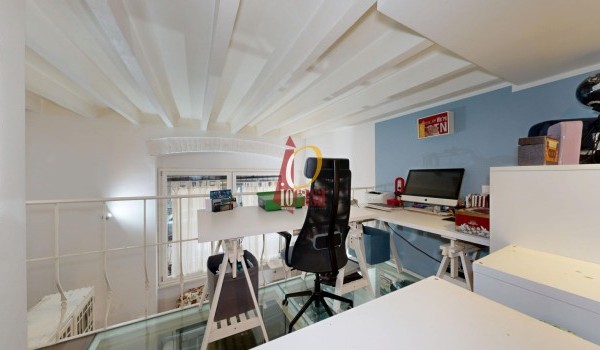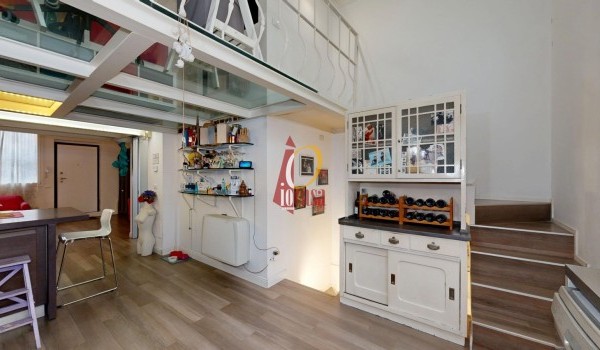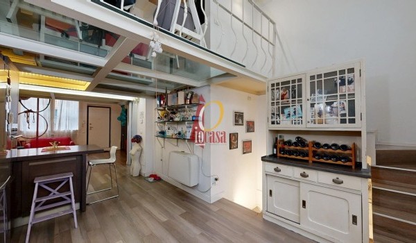 Salendo al piano soppalcato, trovi un'area dal design originale: il pavimento in vetro trasparente lascia filtrare la luce naturale, creando un'atmosfera calda e raffinata. Questo spazio, con altezza di circa 2 metri, è perfetto come studio, zona relax o area guardaroba, grazie alla presenza di un ripostiglio e armadiature su misura.