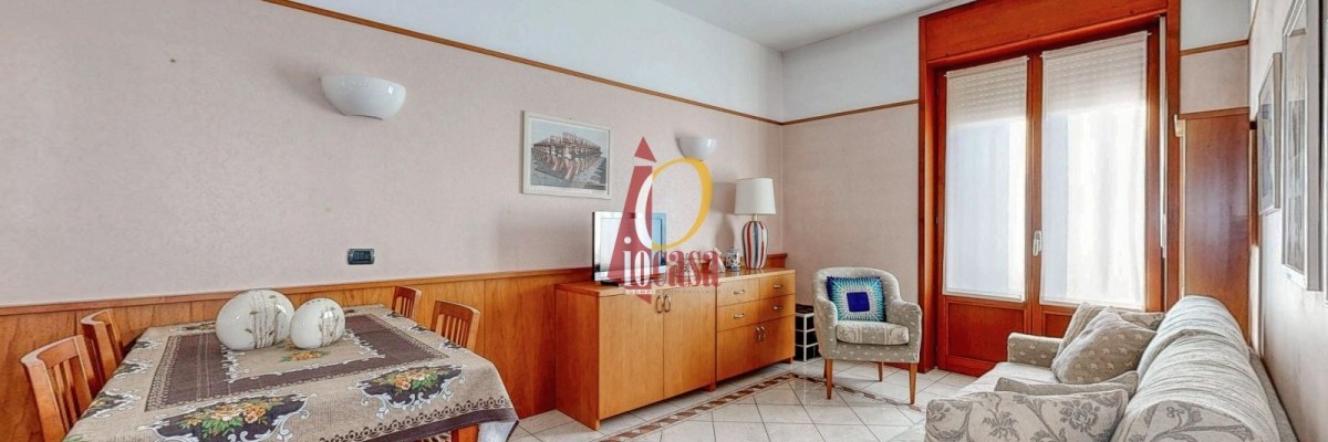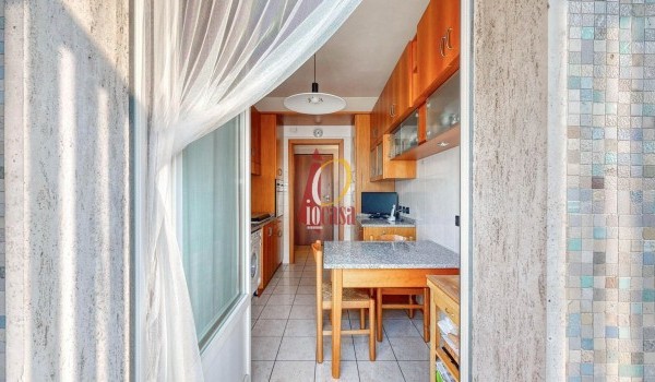L’ingresso conduce al soggiorno, ambiente accogliente e ben distribuito, con cucina abitabile separata e accesso diretto al balcone.