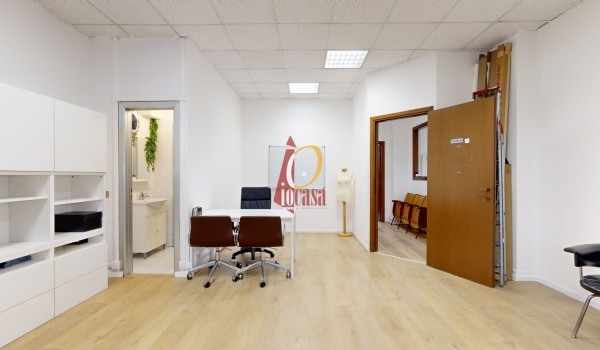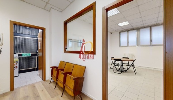 Questo open space è suddiviso in due ambienti generosi, offrendo flessibilità e versatilità per la tua attività professionale.