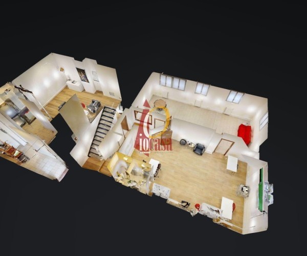 Da qui, una graziosa scala in muratura ti guiderà verso il piano seminterrato, dove si apre un ampio open space, ideale per organizzare e personalizzare il tuo spazio di lavoro in base alle tue esigenze.