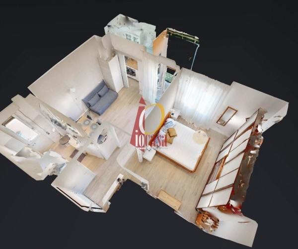 La zona notte ospita una confortevole camera matrimoniale, completa di capiente armadiatura e di un ampio ripostiglio in quota, soluzione pratica per ottimizzare gli spazi.